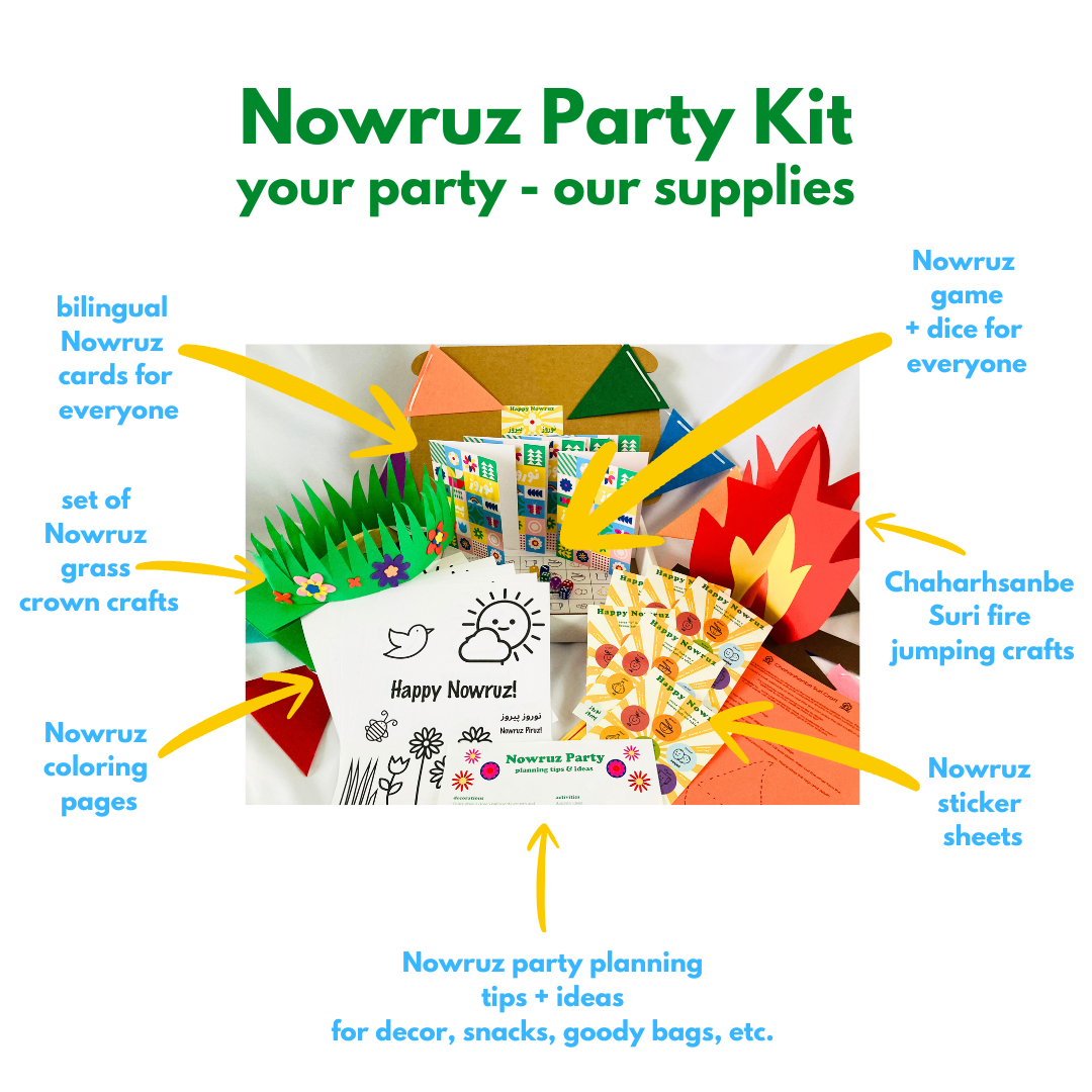 Open our ready-to-go party pack for a fun-filled event with your child's friends, cousins or Persian school classmates. Order a party for six or twelve and we'll provide all the activities as well as a party planning page of tips for decorating, snacks and more.