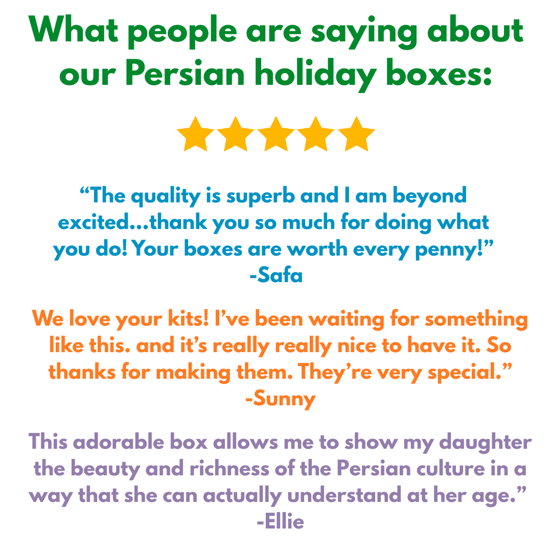 Learning about Nowruz has never been so fun! Inside your child will find crafts and activities that will guide through understanding the customs around Nowruz from Chaharshanbeh Suri to a Haft-Sin and Sizdah Bedar.